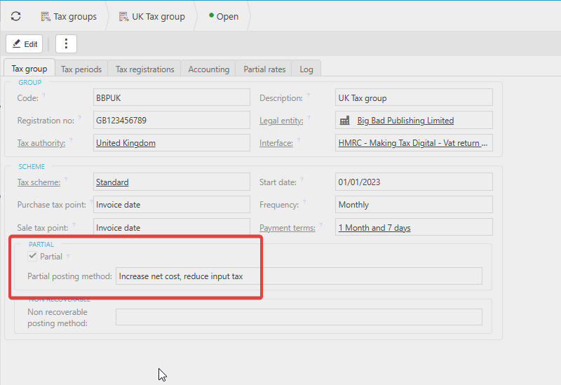 This activates partial VAT functionality for any invoice lines using this tax group.